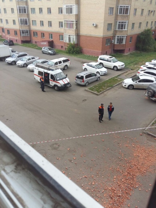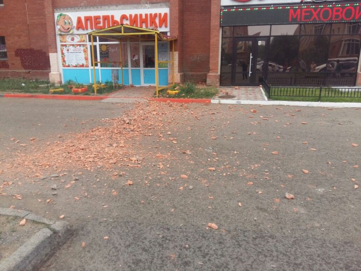 Фасад дома рушится в Астане