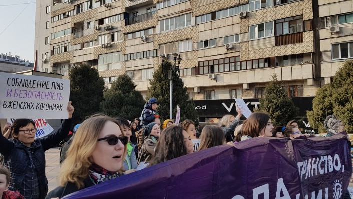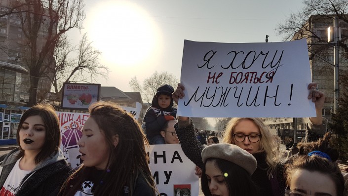 Феминистки прошлись маршем по Арбату в Алматы Фото Tengrinews.kz