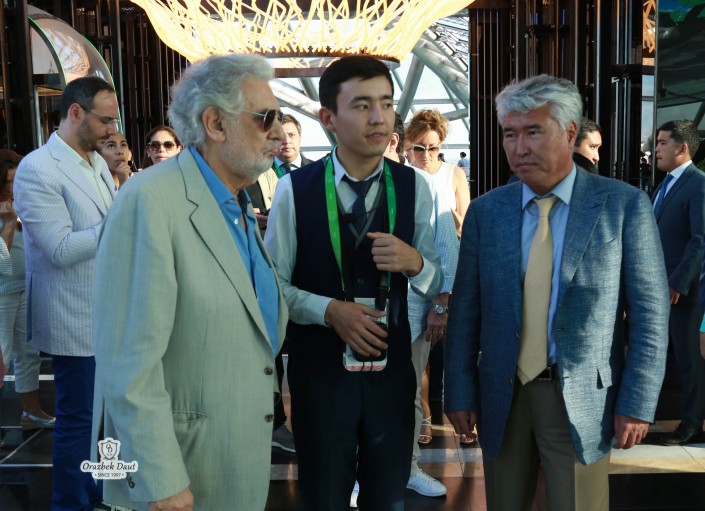 Первый увиденный павильон "Нур-Алем" произвел на маэстро огромное впечатление. С большим интересом он знакомился с казахстанской культурой, особенно ему понравились национальные музыкальные инструменты. Именитый певец поделился, что это не первая выставка EXPO, которую он посещает. До этого маэстро уже смотрел многие из них, в числе которых EXPO в Милане, а в городе Севилье в 1992 году и сам принимал участие в культурных событиях, проходивших в рамках испанской выставки.