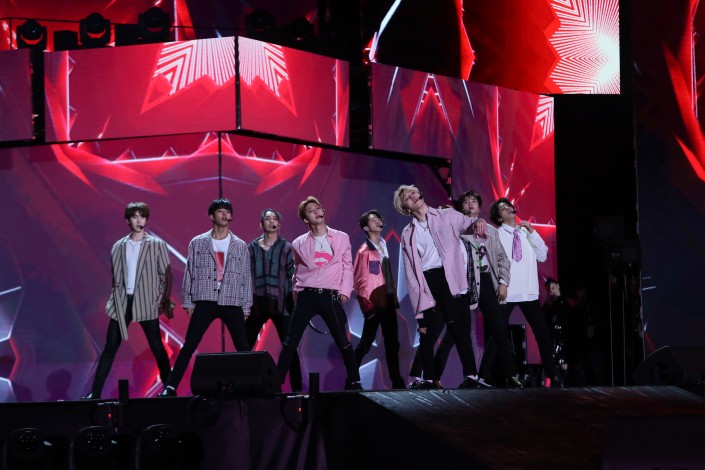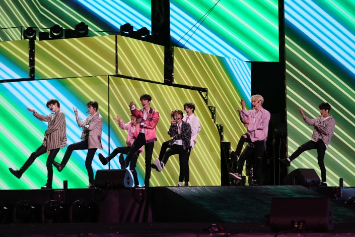 Южнокорейский бойзбенд PENTAGON зажег на сцене с музыкальными номерами Can you feel it, Sha la la, Pretty pretty, Naughty boy, Spring snow и Shine.