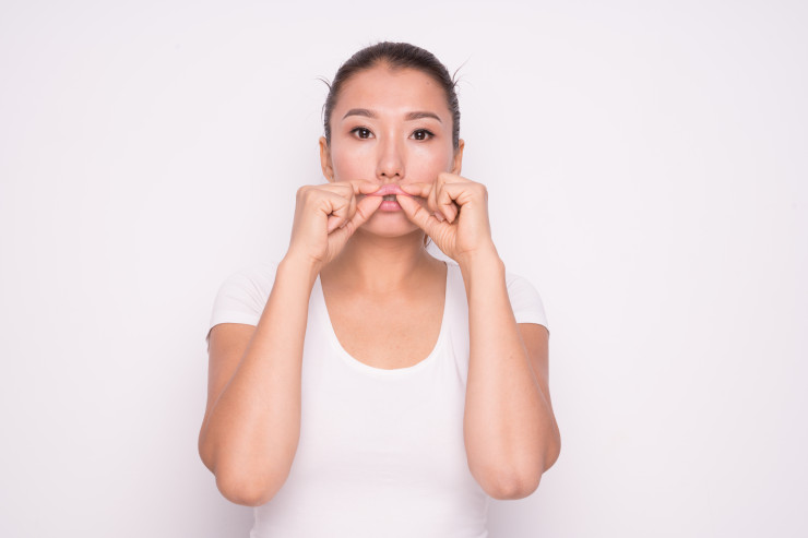 Следующая техника массажа называется "раскатай губу". Благодаря этому губам можно вернуть объем.