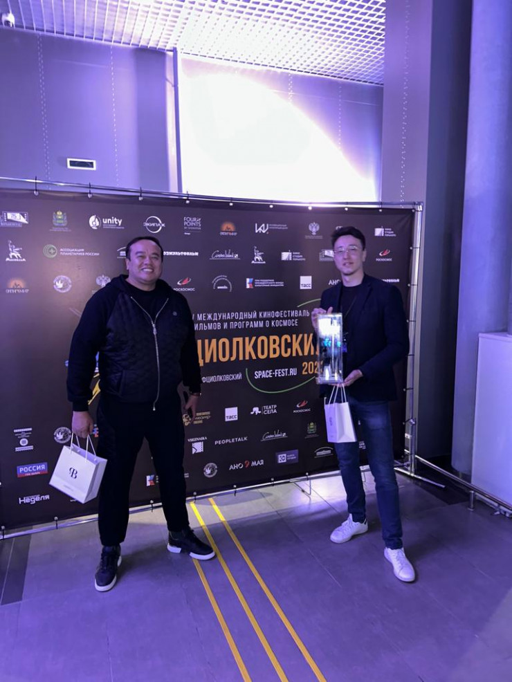 На церемонии закрытия фестиваля 16 апреля в Государственном музее истории космонавтики имени Циолковского трио иллюзионистов братьев Сафроновых вручили режиссеру Алену Ниязбекову и генеральному продюсеру Tiger Films Ерлану Бухарбаеву статуэтку за победу в номинации "Приз зрительских симпатий".