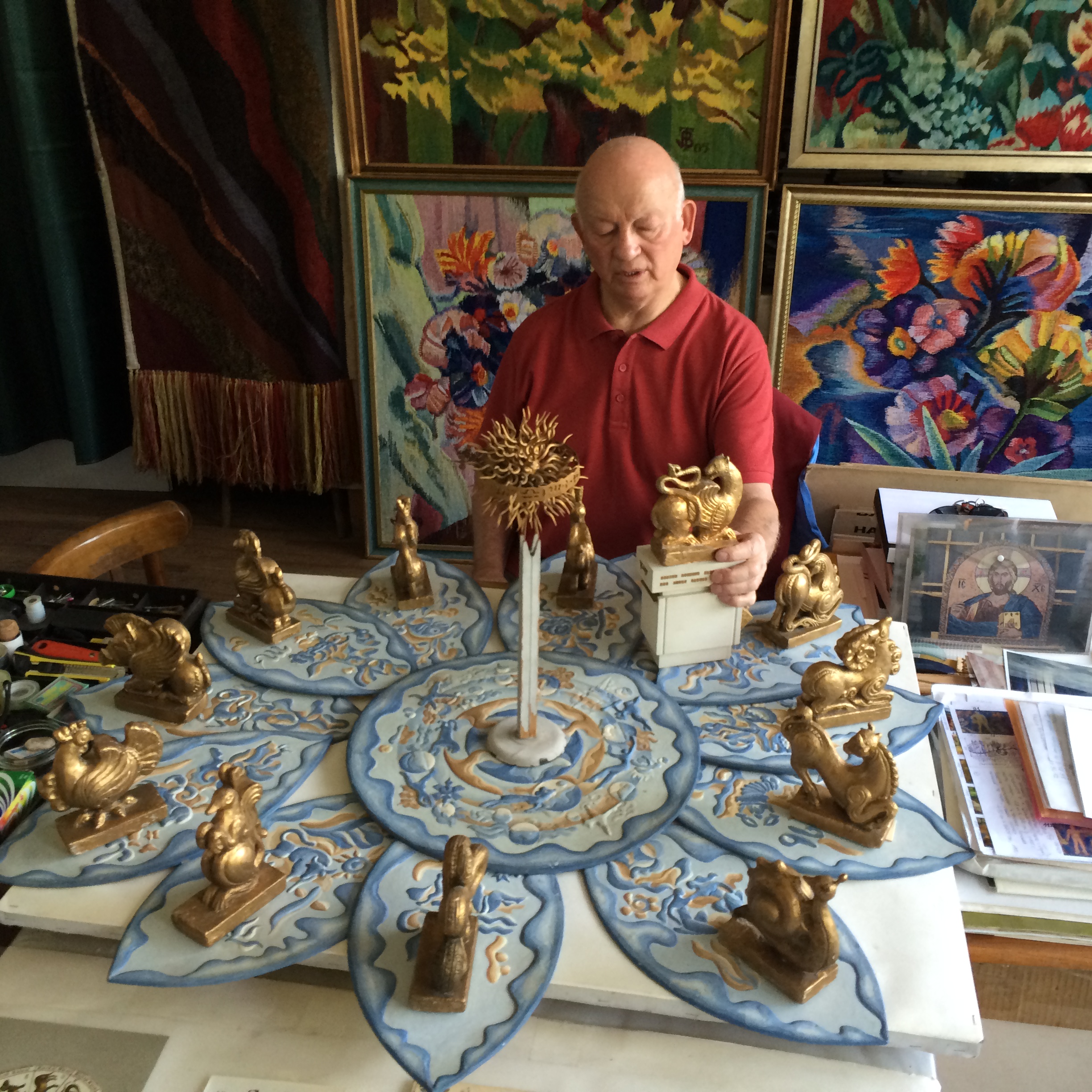"Увидев Алма-Ату, я пришел в восторг. Такой чистый, зеленый, свежий город. Но фонтанов не было. И я предложил построить фонтан "12-годичный восточный календарь". В нем мне хотелось использовать звериный стиль искусства древних саков, скифов и других народностей, проживавших на территории нынешнего Казахстана. (...) По календарю годы начинаются с мышки, она и у меня стоит первая. Согласно легенде, мышка забралась на горб верблюда и первая увидела восходящее солнце, поэтому гороскоп начинается с нее. (...) Работа шла очень сложно. Отлить бронзу было негде. Все заводы были загружены, и к тому же материал-то был стратегический. Разрешение на работу с бронзой удалось получить на электро-механическом заводе в Алма-Ате. И хотя предприятие не было предназначено для таких тонких работ, получилось все на славу", - рассказал художник.