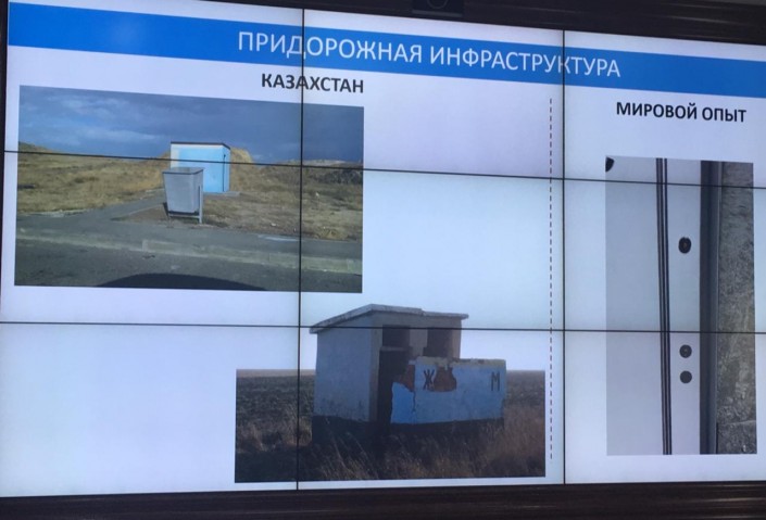 "Туалеты - это уже притча во языцех стала. Элементарным санитарно-гигиеническим нормам не соответствуют. Сами же ездим, смотрим, но заходить туда невозможно", - заявил Бектенов и продемонстрировал Камалиеву фотографии, снятые на казахстанских дорогах.