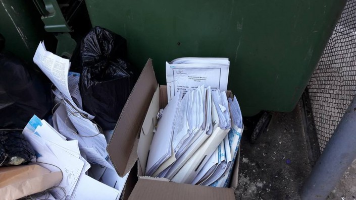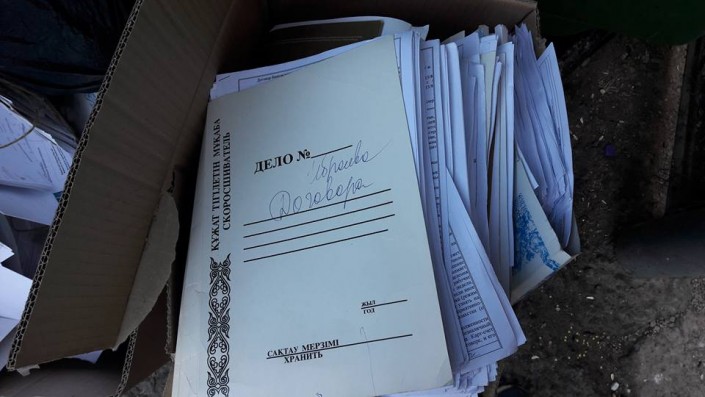 Житель Астаны Тимур Асылханов опубликовал в Facebook  фотографии, на которых изображены папки с документами, оставленные у мусорных контейнеров. В комментарии, оставленном мужчиной, указывается, что речь идет об архивных документах клиентов банка.