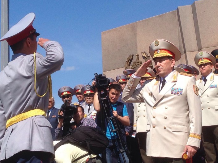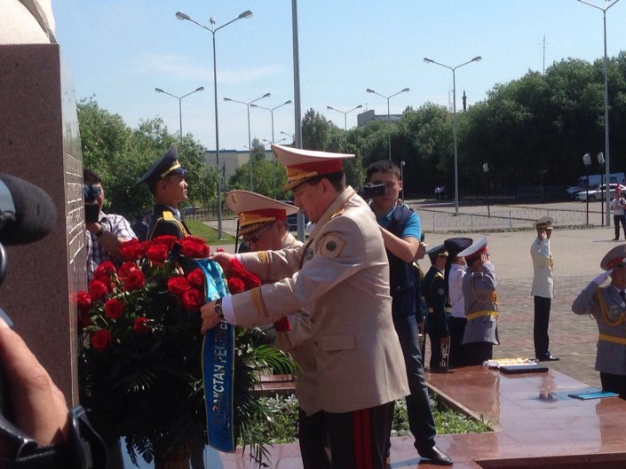 Торжественное мероприятие началось с возложения цветов у монумента погибшим за годы независимости полицейским Казахстана.