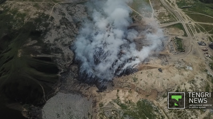 Мусорный полигон, который загорелся близ Алматы, сняли с высоты птичьего полета. Корреспонденты TengriTV побывали на месте и увидели все своими глазами.