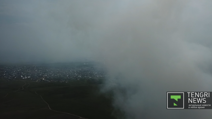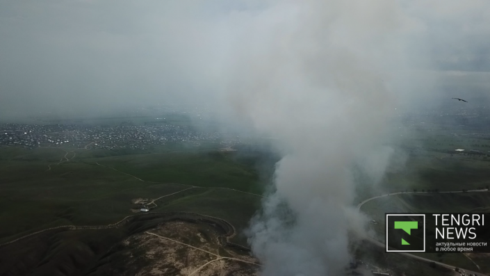 Горящий близ Алматы полигон сняли с высоты птичьего полета