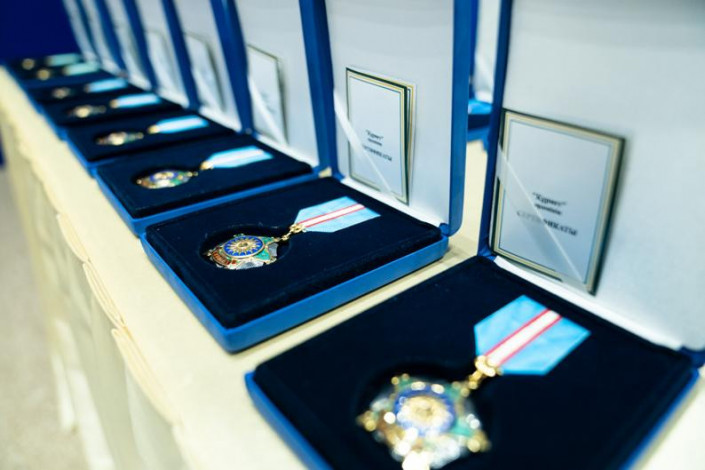 Аким столицы Алтай Кульгинов в соответствии с Указом Главы государства вручил госнаграды горожанам, представляющим сферы здравоохранения, образования, транспорта, строительства, энергетики, промышленности, культуры, общественных организаций, и астанчанам, которые участвовали в восстановлении Арыса, передает Tengrinews.kz со ссылкой на сайт столичного акимата.