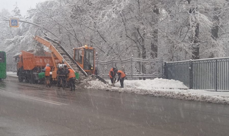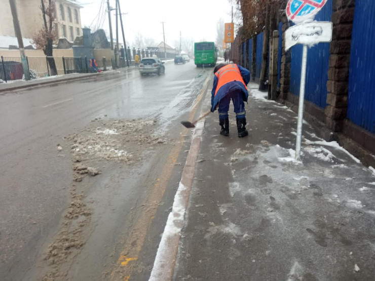 Ранее в ночь на 26 ноября в Алматы начался дождь с переходом в снег. К утру в предгорных районах города выпало до шести сантиметров снега, а в горных - до 10 сантиметров. Для предотвращения гололеда ночью на расчистку снега выехали порядка 500 единиц техники и 337 дорожных рабочих. Утром во второй смене было задействовано уже более 580 единиц спецтехники и свыше 1500 рабочих. По прогнозу Казгидромета, выпадение смешанных осадков завершится к утру 27 ноября.