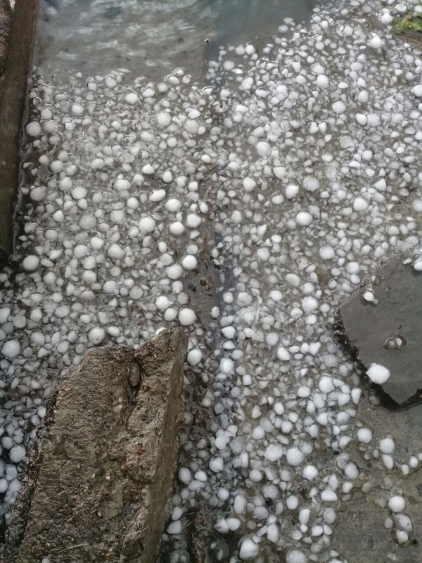 "В одном конце Шахтинска град выпал размером с горошину, а в нашей части города очень крупный, как большая черешня - я всерьез испугалась за машину, которую оставила во дворе, - рассказывает жительница Шахтинска Татьяна Качесова. - Помидоры град повредил, вишню посбивал, кусты картофеля уложил на землю".