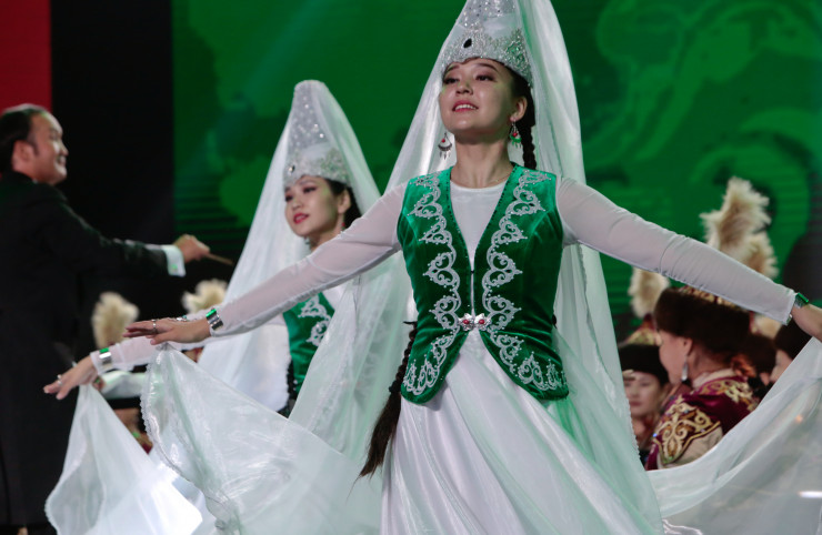 Невероятный по красоте исполнения номер представили артистки ансамбля народного танца "Шалқыма", обратившиеся в белых лебедей - музыкальным вдохновением для зрелищного представления стал знаменитый кюй "Аққу" народного композитора Сүгіра, который полнозвучно и проникновенно исполнил Казахский оркестр.