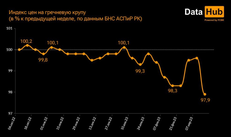 Гречка дешевеет уже 10 недель подряд, передает корреспондент Tengrinews.kz со ссылкой на Telegram-канал Data Hub. По его данным, с 7 по 14 марта 2023 года гречневая крупа подешевела сразу на 2,1 процента. Это самое сильное недельное снижение, по крайней мере, с начала 2022 года и уже десятое по счету подряд. Такие данные приводит Бюро национальной статистики АСПиР РК.