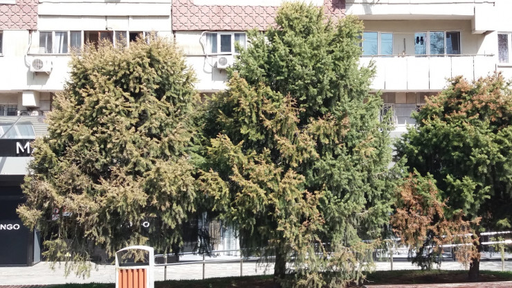 Экологи заявили на своей странице Facebook, что здоровые деревья, высаженные 2000 году по улице Жибек Жолы, высохли после высадки здесь ели, сосны и туи из Европы. Новые саженцы вместо них тоже погибли, говорят в обществе.