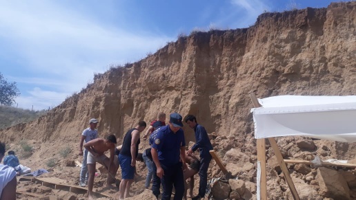 Грунт обвалился на детей на пляже в Актобе Фото пресс-службы КЧС МВД РК