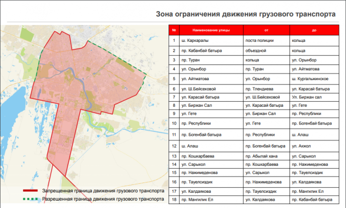 Акимат столицы уже вводил подобные ограничения в период проведения международной выставки EXPO. Тогда въезд для грузового транспорта на определенные участки города был ограничен с 06.00 до 23.00 часов.