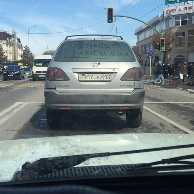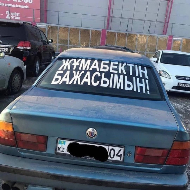 Бұл жағдай қазақстандықтардың назарынан тыс қалмады. "Жұмабектің бажасы" болу полицейлерден құтқарады деп ойлады ма, кей жүргізуші әзілдеп, көлігіне солай жазып қойған.