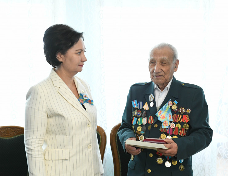 Гульшара Абдыкаликова поздравила 99-летнего ветерана ВОВ