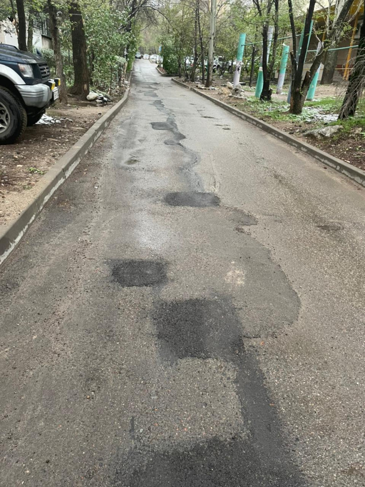 Что касается выравнивания асфальта по всему двору, то, как объяснили в компании, это относится к работе акимата района.