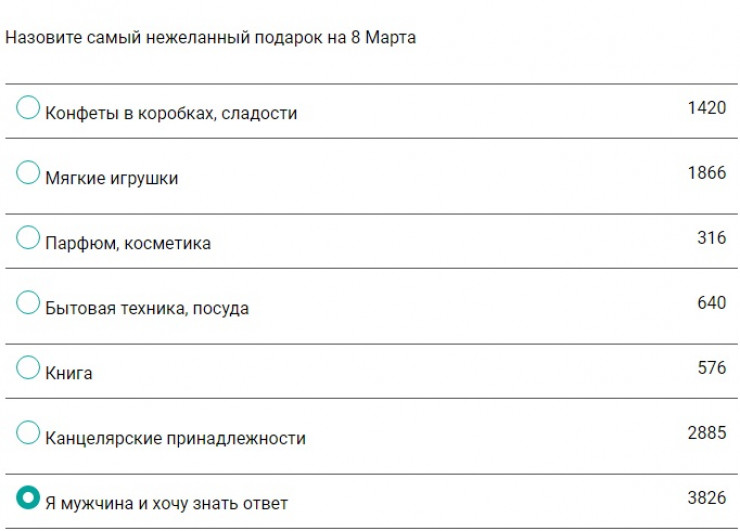 Отметим, что в голосовании приняли участие больше 11,5 тысячи человек. Почти четыре тысячи из них оказались мужчинами, которые выбрали вариант "Хочу знать ответ".