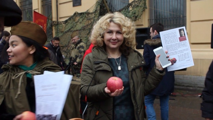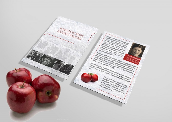 У здания Государственного мемориального музея обороны и блокады Ленинграда всем прохожим раздавались яблоки алматинского сорта апорт, а также фотографии с краткой информацией о Фатиме Аубакировой, благодаря которой ленинградцы впервые почувствовали волшебный вкус и аромат казахстанских фруктов.