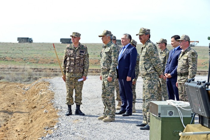 Министр обороны РК Имангали Тасмагамбетов присутствовал на специальных учениях "Жәрдем-2016", которые проходят на полигоне Сарышаган, сообщает Tengrinews.kz со ссылкой на пресс-службу ведомства.