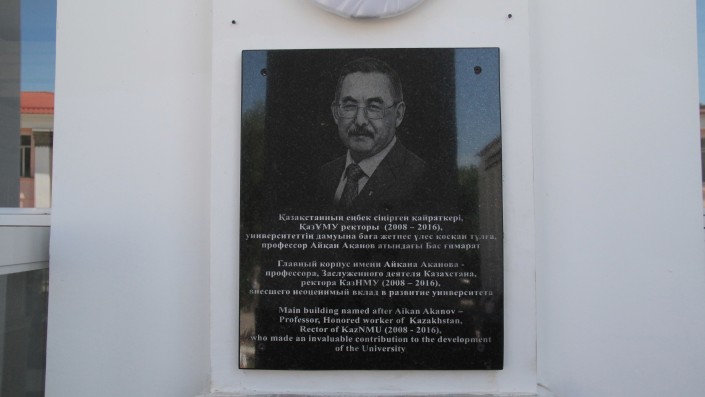 Табличка с именем Айкана Аканова появилась на главном корпусе КазНМУ по адресу Толе би, 94. В церемонии приняли участие исполняющий обязанности ректора Нургуль Хамзина и академики Торегельды Шарманов и Камал Ормантаев. "Вклад Айкана Аканова невозможно переоценить, то, что он сделал, останется в памяти многих поколений. Это был особый этап развития университета. КазНМУ получил признание в стране. В период ректорства Аканова мы многого достигли, университет стал частью стремительного развития нашего государства. И сегодняшнее признание заслуг Айкана Аканова - это своего рода выражение нашей веры в будущее, веры в достигнутое, веры в наши силы", - отметил Шарманов. Кроме того, академик выразил благодарность студенчеству за проявленную инициативу по увековечению имени Айкана Аканова.