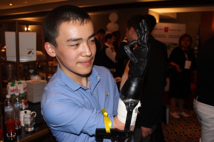 Проект команды Международного университета информационных технологий - электромеханический протез с системой мио-управления, снятия электрических импульсов с мышц.