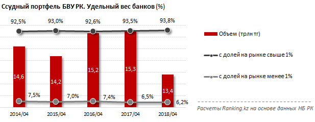 Как сообщается, удельный вес крупных банков составил уже 93,8 процента от "ссудника", это самый высокий показатель за последние пять лет.