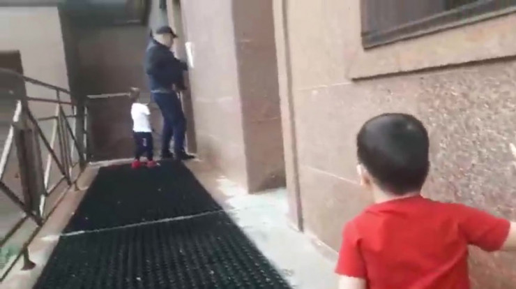 На кадрах видно, что двое мальчиков гуляют недалеко от входа в детский сад без верхней одежды. Детей заметили мужчины, завели их в здание и передали воспитателям.