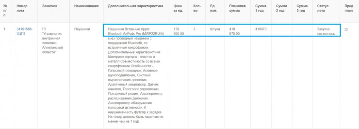 Напомним, что ранее в соцсетях появились сведения, что в Алматинской области два года подряд закупаются дорогие беспроводные наушники от компании Apple. Сообщалось, что стоимость заказов - более полумиллиона тенге, а заказчиком выступило региональное Управление внутренней политики.