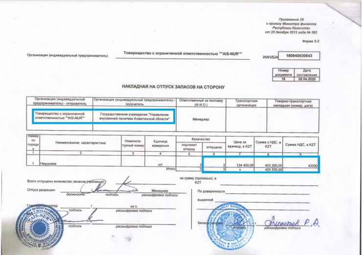 Однако позже в Telegram-канале Protenge опровергли данные областной администрации. По их информации, акимат действительно закупил четыре пары наушников. Публикацию канал сопроводил документами.