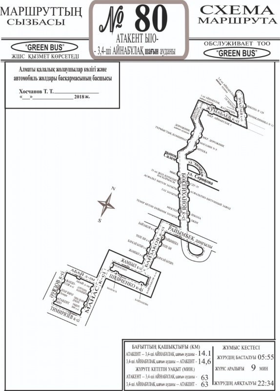 Маршрут № 80 следует в южном направлении по улице Байзакова до улицы Шевченко, далее в западном направлении по улице Байзакова до улицы Шевченко и затем по маршруту согласно утвержденной схеме.