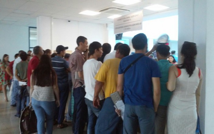 Из-за сбоя связи в спецЦОНе Астаны образовались очереди, сообщает корреспондент Tengrinews.kz.