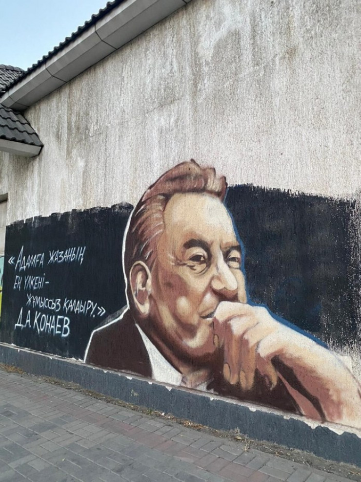Граффити с изображением советского государственного и общественного деятеля, дважды первого секретаря ЦК Коммунистической партии Казахской ССР Динмухамеда Кунаева появилось в Шымкенте на доме, который находится на пересечении улиц Дулати и Мадели кожа, сообщает Otyrar.kz.