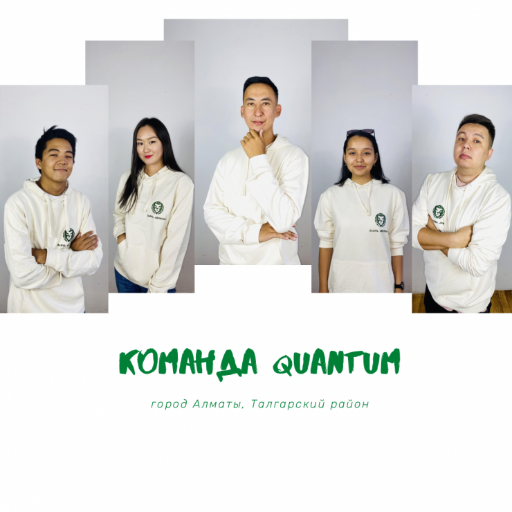 1. Quantum (Байжұма Жандос, Тарғын Айнұр, Мұхаметқали Айару, Алишер Бигали, Мырзатаев Эльдар) с проектом по образовательным программам для формирования эко-сознания детей и подростков.