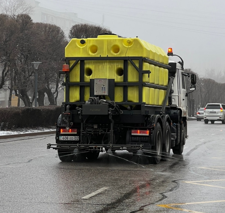 "Для ГКП "Алматы тазалык" за счет бюджетных средств закуплены три комбинированные дорожные машины на шасси грузового автомобиля КамАЗ 65116-6010-48 с навесным оборудованием для жидких противогололедных реагентов. На машинах установлена емкость объемом 10 кубометров, в которую заливается 24-процентный раствор химического реагента NaCl (техническая соль)", - прокомментировали в Управлении развития коммунальной инфраструктуры города Алматы.