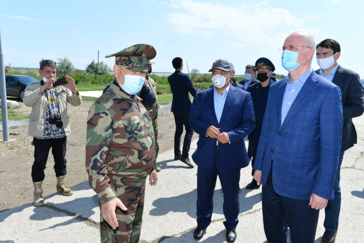 После облета затопленных территорий совместно с акимом Туркестанской области Умирзаком Шукеевым и узбекскими коллегами госкомиссия отправилась в затопленные поселки Оргебас и Фердоуси.