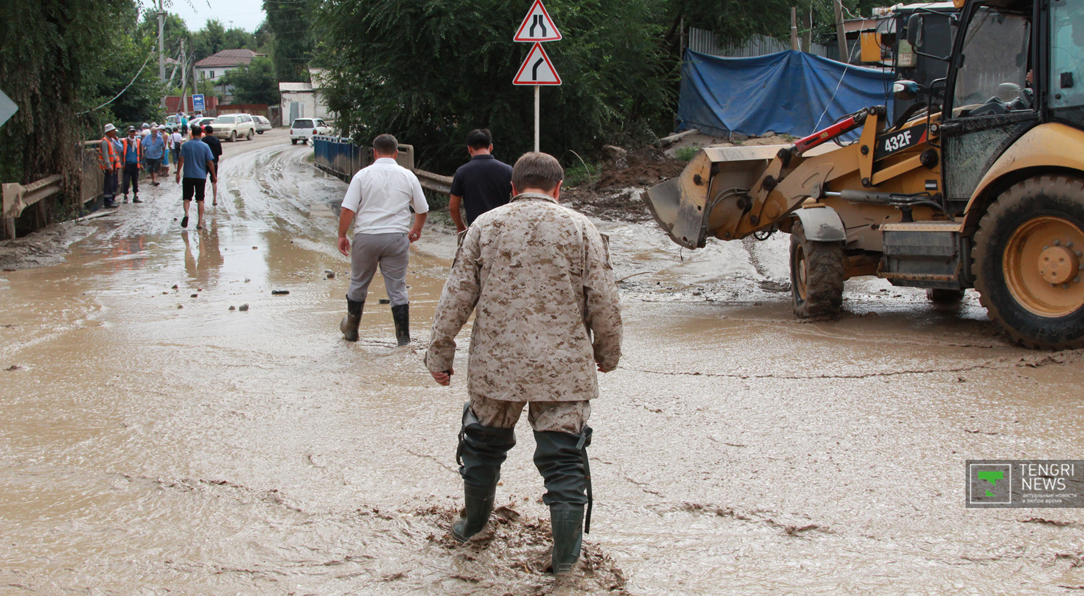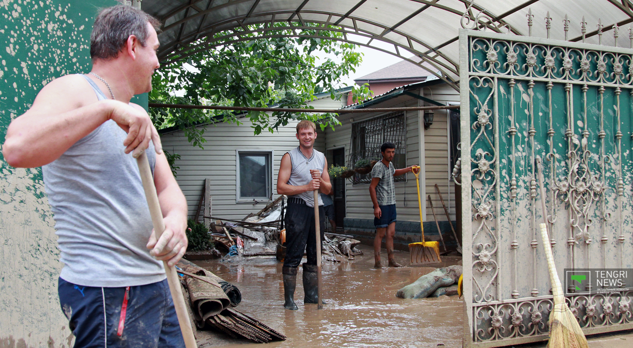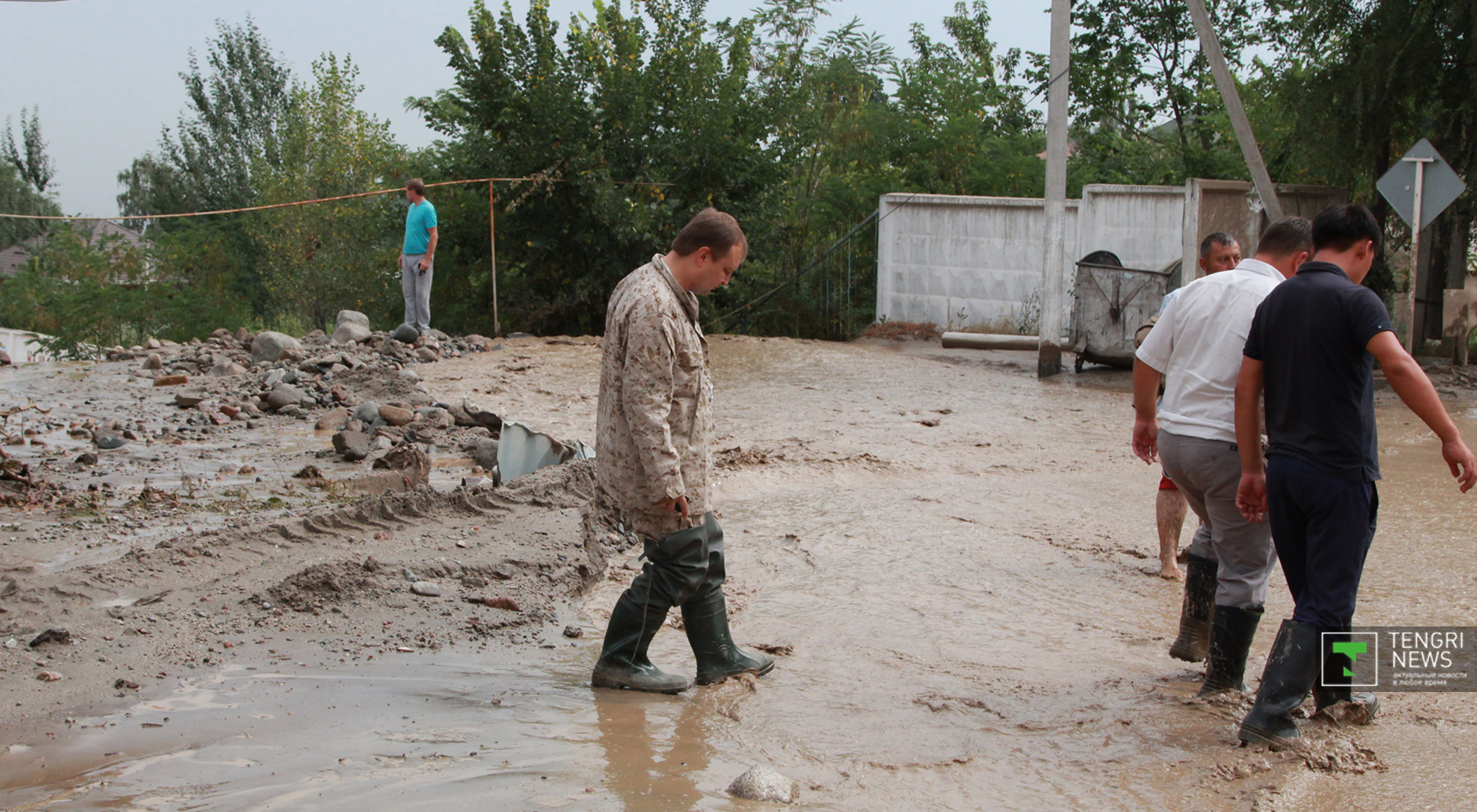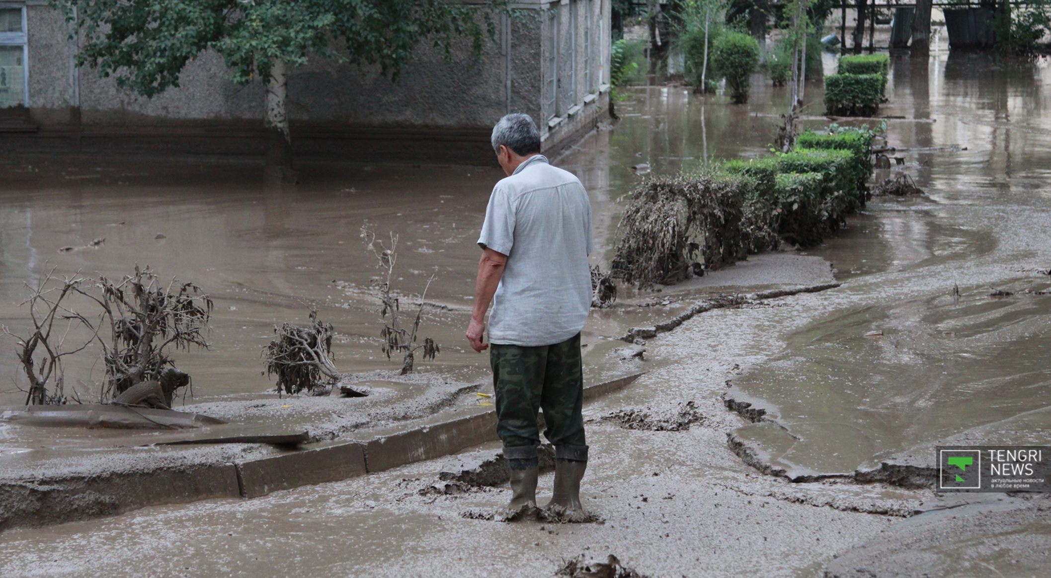 Журналисты Tengrinews.kz подоспели к месту ЧП после рассвета. К тому времени основной поток селя уже спал, и люди начали своими силами восстанавливать порядок. Им помогали подоспевшие на место сотрудники ЧС.