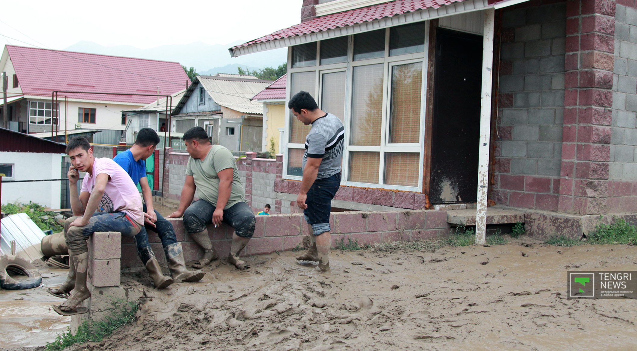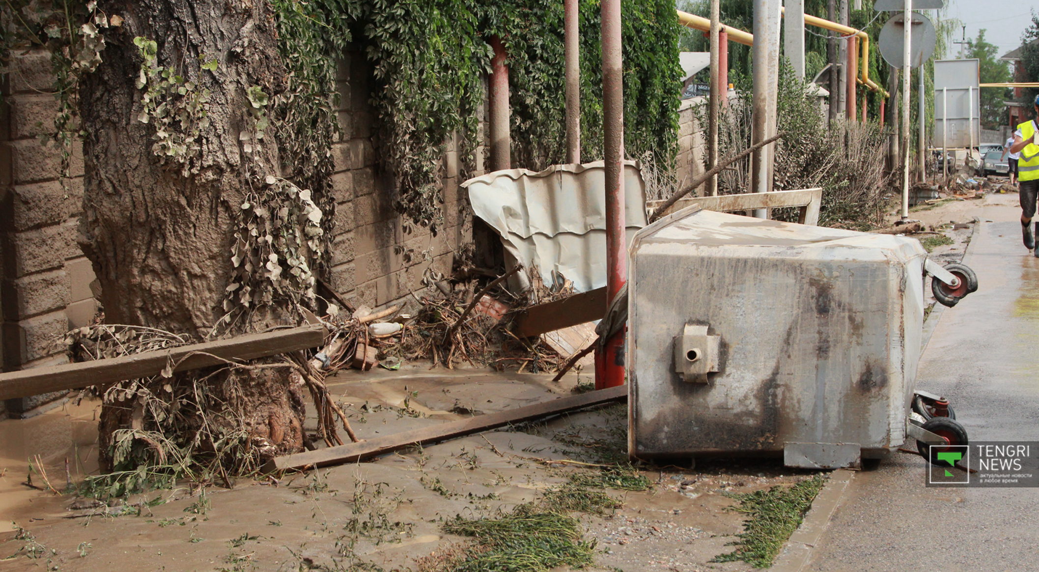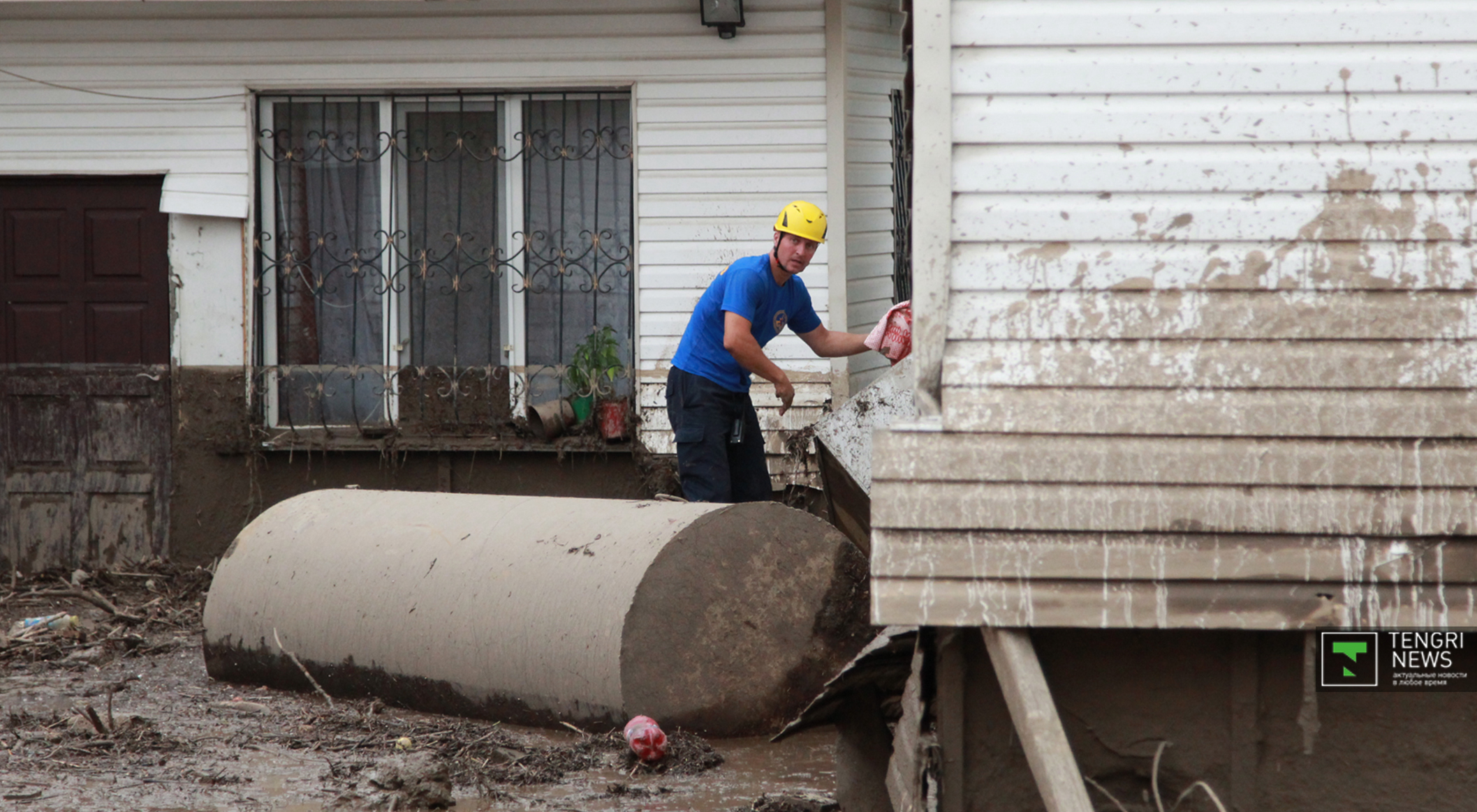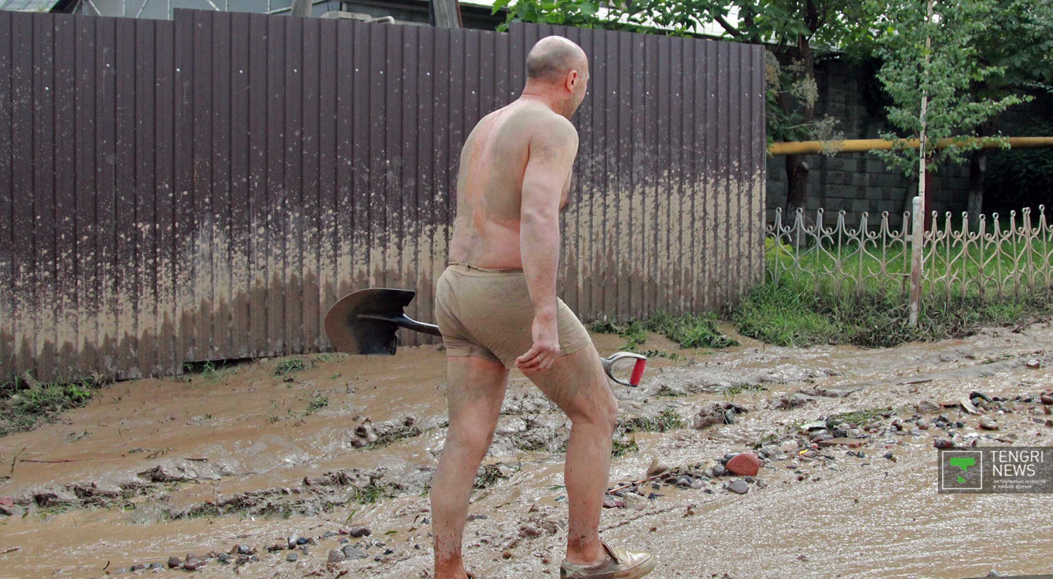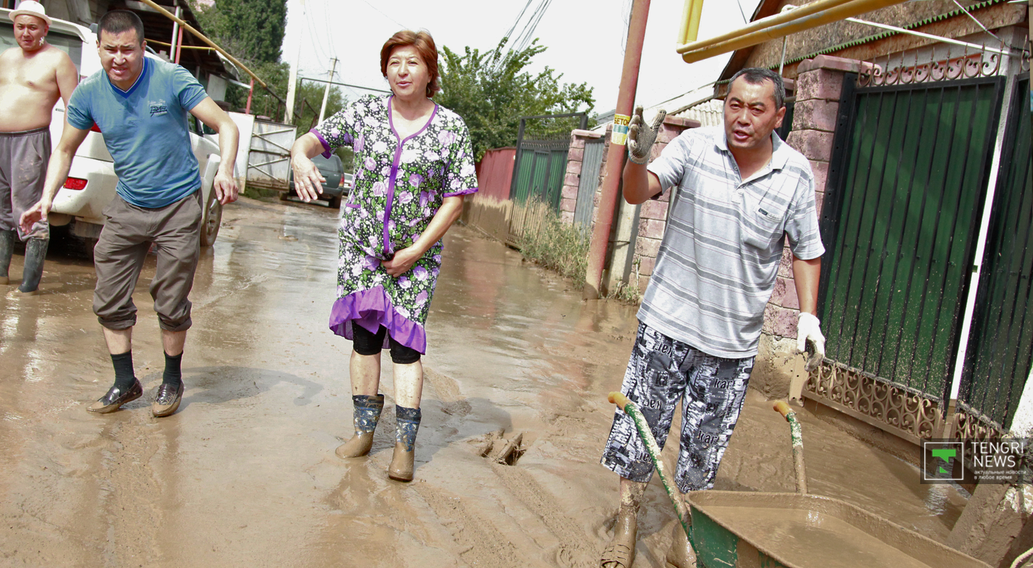 Журналисты Tengrinews.kz подоспели к месту ЧП после рассвета. К тому времени основной поток селя уже спал, и люди начали своими силами восстанавливать порядок. Им помогали подоспевшие на место сотрудники ЧС.