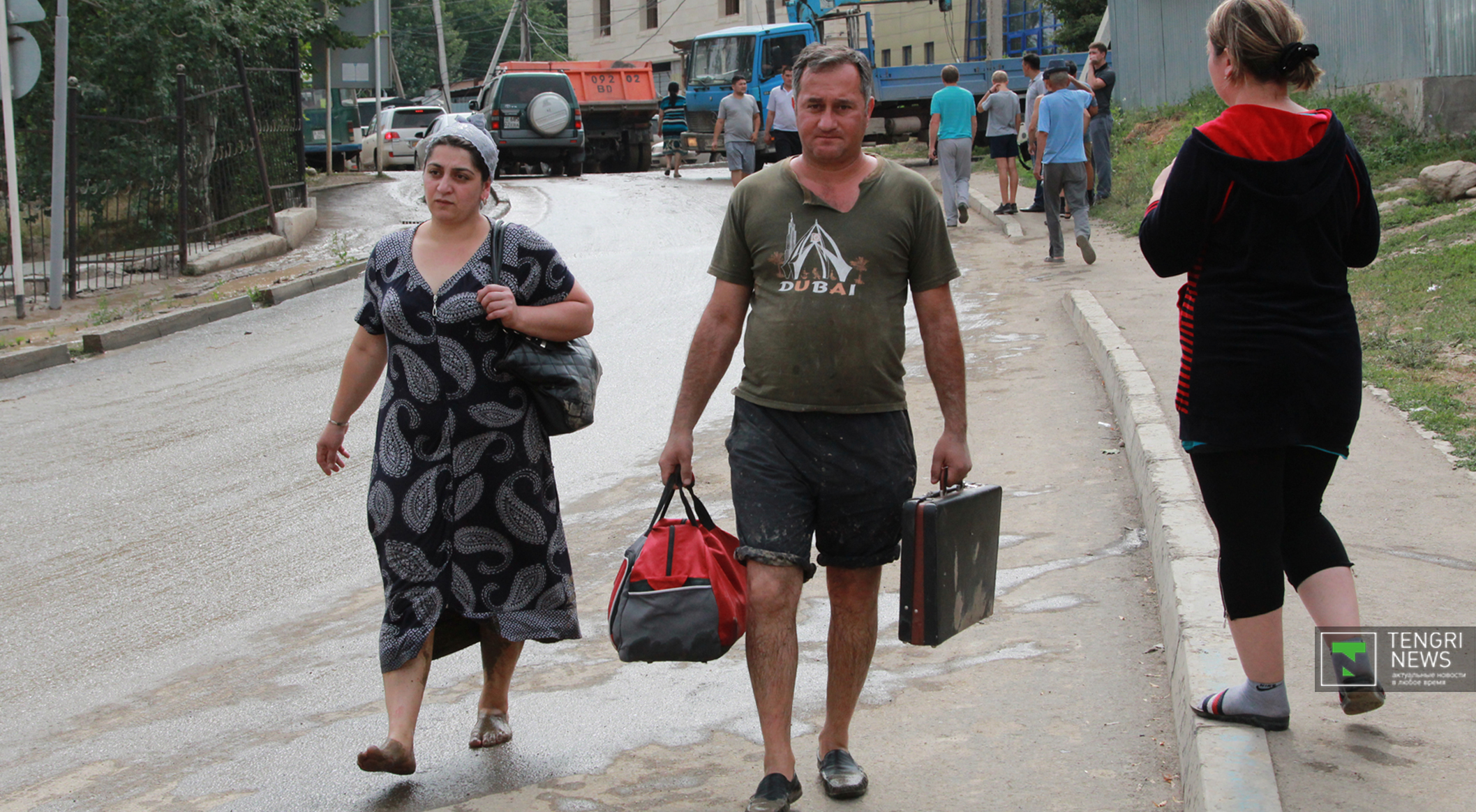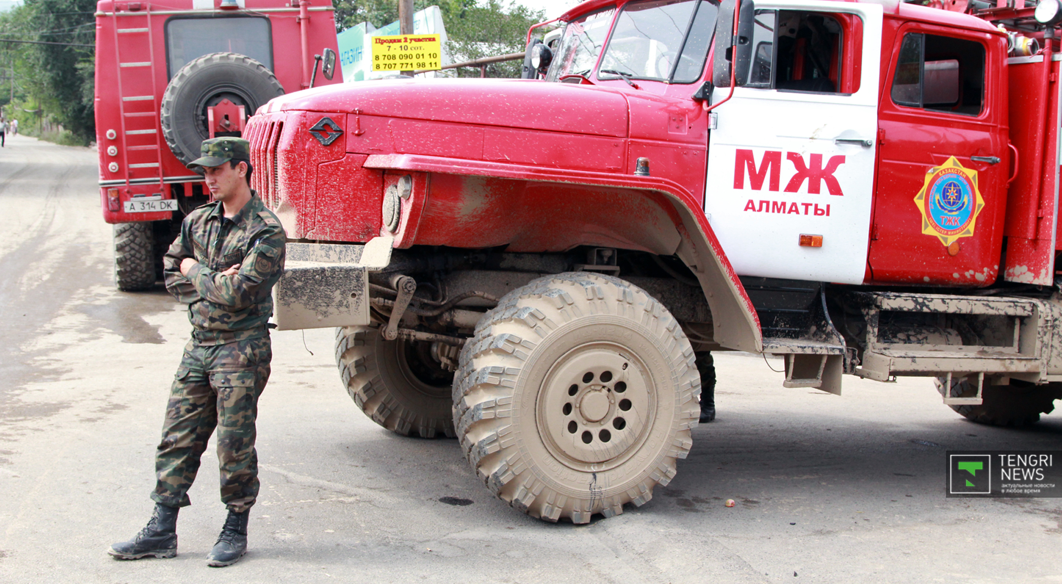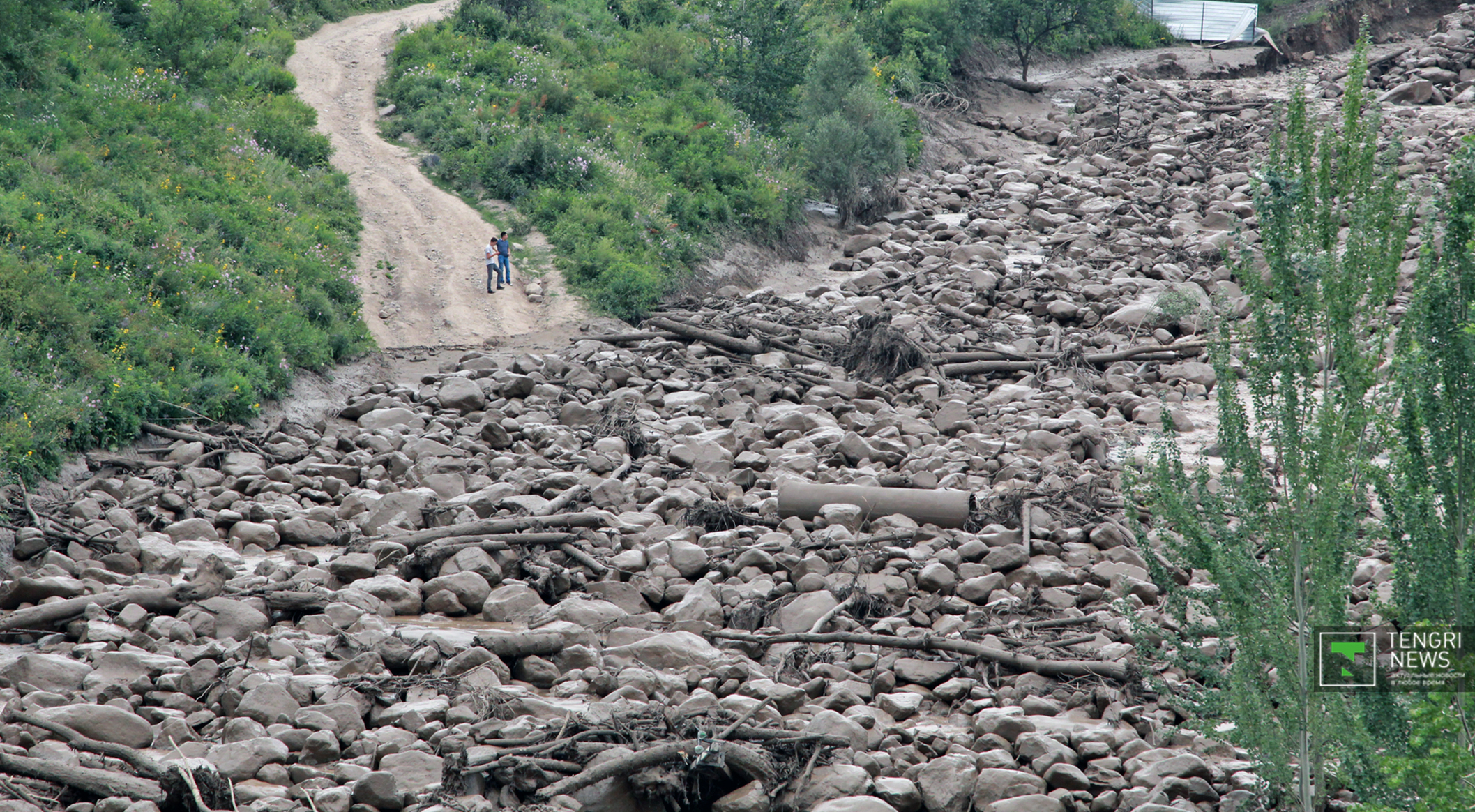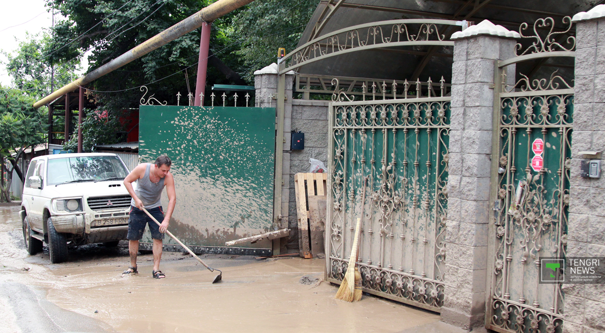 Журналисты Tengrinews.kz подоспели к месту ЧП после рассвета. К тому времени основной поток селя уже спал, и люди начали своими силами восстанавливать порядок. Им помогали подоспевшие на место сотрудники ЧС.