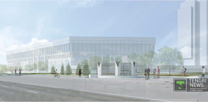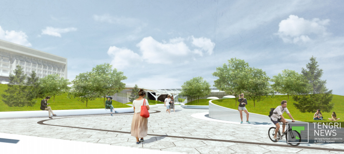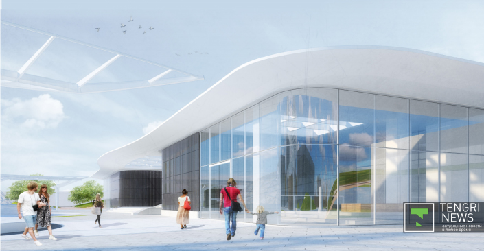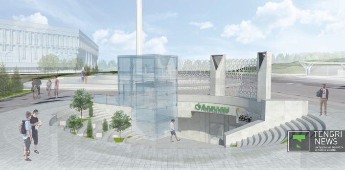 Западный вход с улицы Сатпаева . Эскизы предоставлены Управлением архитектуры и градостроительства Алматы.