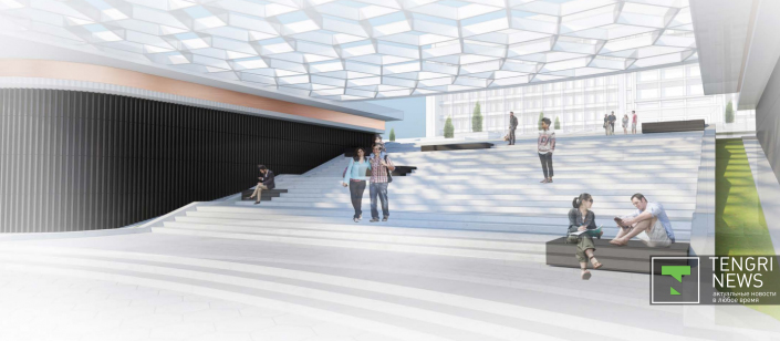 Вид на центральную лестницу. Эскизы предоставлены Управлением архитектуры и градостроительства Алматы.