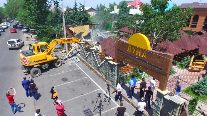 После этого события последовала череда сноса незаконных построек. Так, например, снесли несколько незаконно возведенных построек в кафе "Луна", которое располагается в микрорайоне "Школьник-2". С помощью спецтехники разрушили пристройки под шашлычную и туалет. Помещения были построены на земельном участке госфонда за пределами своей границы.