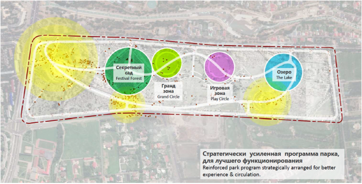 "Мы объявили конкурс на проектирование. Важно активизировать всю территорию. Сформированы четыре функциональные зоны – зона для досуга, игровые площадки, зоны для семейного досуга. В конце парка будет озеро как центр, точка притяжения.