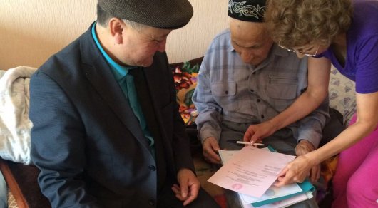 Тем временем, в Павлодаре проголосовал старейший казахстанский ветеран ВОВ - 107-летний Бухариден Серимов.