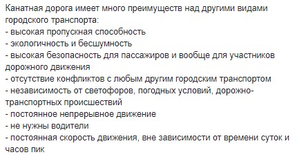 "Если привлечь серьезных европейских производителей систем канатных дорог, то можно обеспечить среднюю скорость канатки на уровне около 20 км/ч (для сравнения, средняя скорость городского автобуса в таком городе, как Астана, равна 15 км/ч, LRT из мирового опыта – 30 км/ч). Здесь еще отпадает необходимость пассажирам ждать подолгу свой транспорт: прибытие гондолы можно отрегулировать по времени, например каждые 10-20 секунд, или даже снизить ожидание до 5-7 секунд, а вместимость гондолы довести до 15-20 человек.  Просто несравнимо быстрее любого автобуса, троллейбуса или поезда. Электродвигатели, как правило, работают у канаток бесшумно, и всегда есть резервная ДГУ на случай сбоев с электроэнергией", - написал Марат Чиналиев (пост датирован 16 апреля 2019 года).