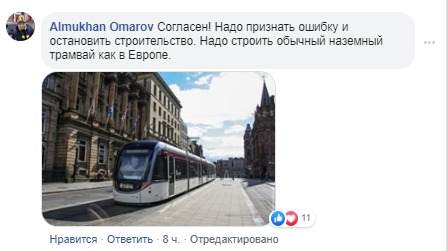В группе "Астана - Что? Где? Когда?" в Facebook жители города предлагают свои идеи относительно проекта легкорельсового транспорта.