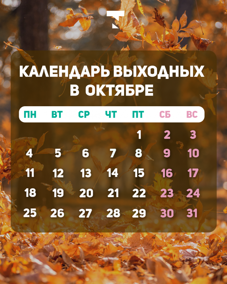 В сентябре жители, работающие по пятидневной рабочей неделе, получили 8 выходных дней.