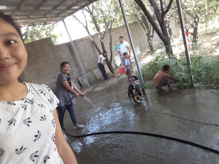 С семью детьми Жанар Куттыбай справляется сама. Говорит, что раньше бабушка помогала, а сейчас все на ней. Правда, без помощи детки ее не бросают. Старшая Назгуль палочка-выручалочка. Она и за младшими смотреть помогает, и на кухне чудеса творит, не без гордости рассказывает мама. "Назгуль очень любит печь торты, кексы, пироги. Этим она не в меня, я печь не люблю. А дочка найдет в интернете новый рецепт и сразу творить начинает", - рассказывает Жанар.